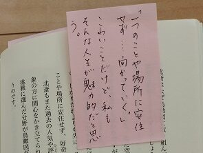 私はこのページの「一つのことや場所に安住せず、好奇心いっぱいで、新しい分野に向かっていく。」という表現が気になったのでふせんを貼りました。